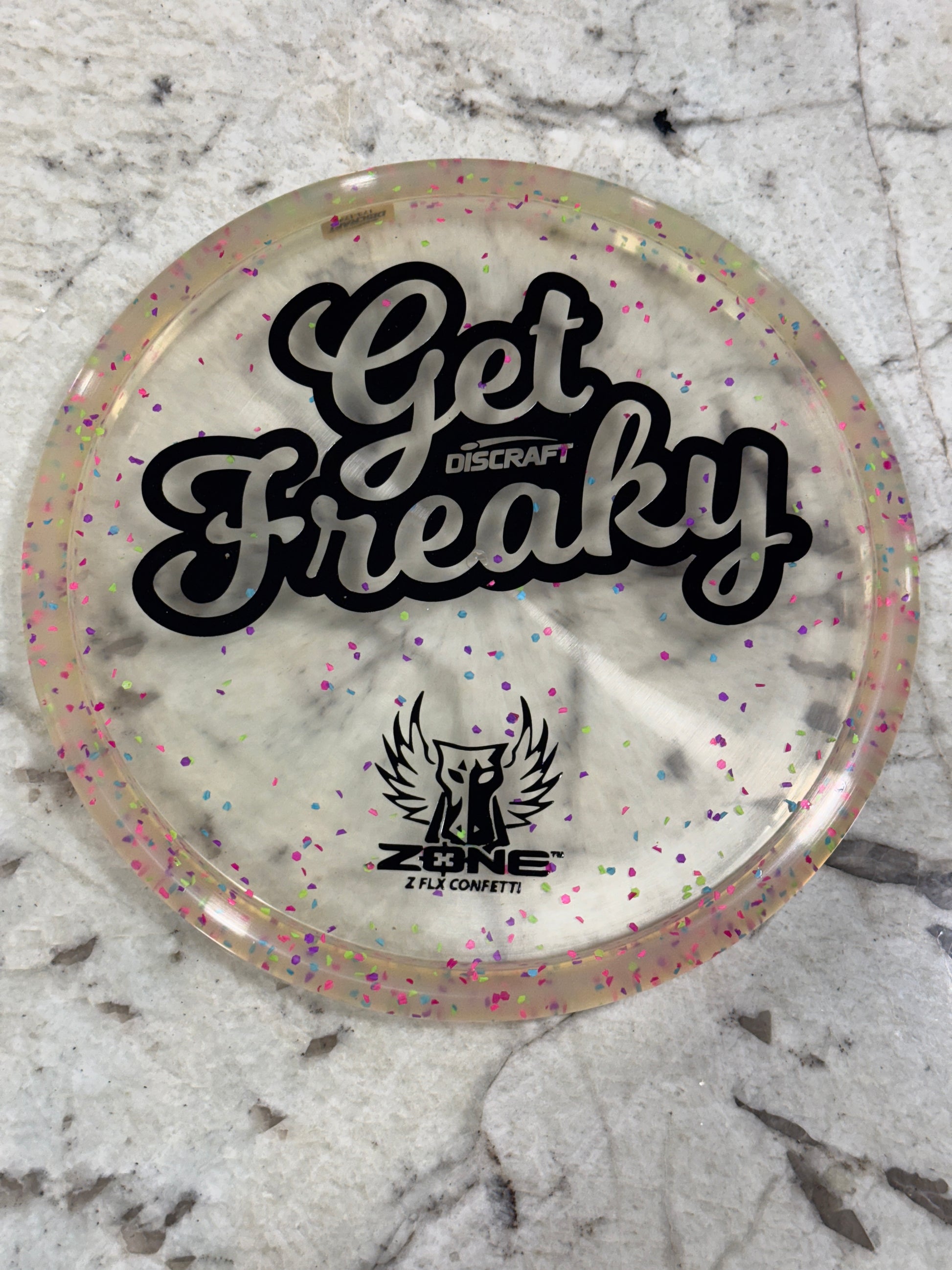 4/3/0/3 *Customer Favorite Get Freaky is back with a Z FLX Confetti Zone for Brodie Smith Tour Series! These Zones look and feel excellent! All discs are clear with some confetti - organized by main color pictured - Clear, Pink, Lime.
