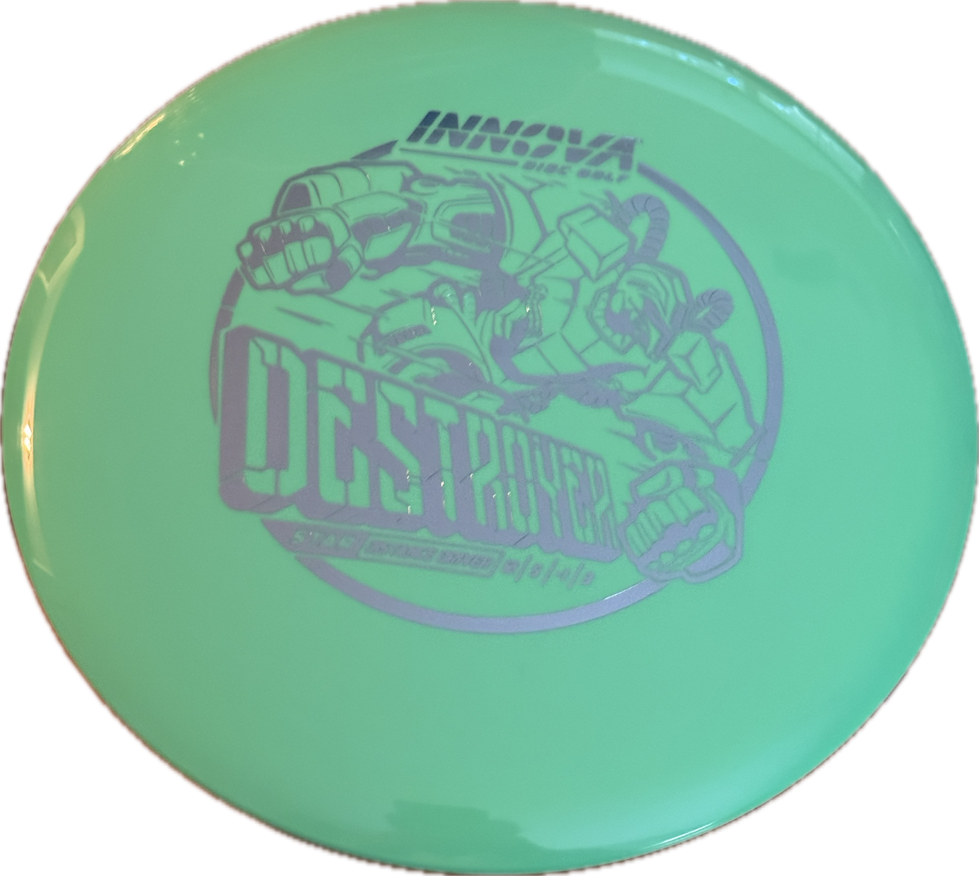 This was the first Speed-12 driver and is one of the primary discs used by many professional disc golfers. For less experienced players, the Destroyer excels for forehand throws. The Destroyer is overstable, but has a degree of turn to help provide incredible glide and distance. Intermediate players will get more distance on forehand throws with the Destroyer than just about any other disc. The Innova Destroyer is a very thin (1.4cm) disc, and has the perfect sized rim (2.2cm) for high speeds, without being uncomfortably thick. As such a popular driver, the Destroyer comes available in all the major plastics.